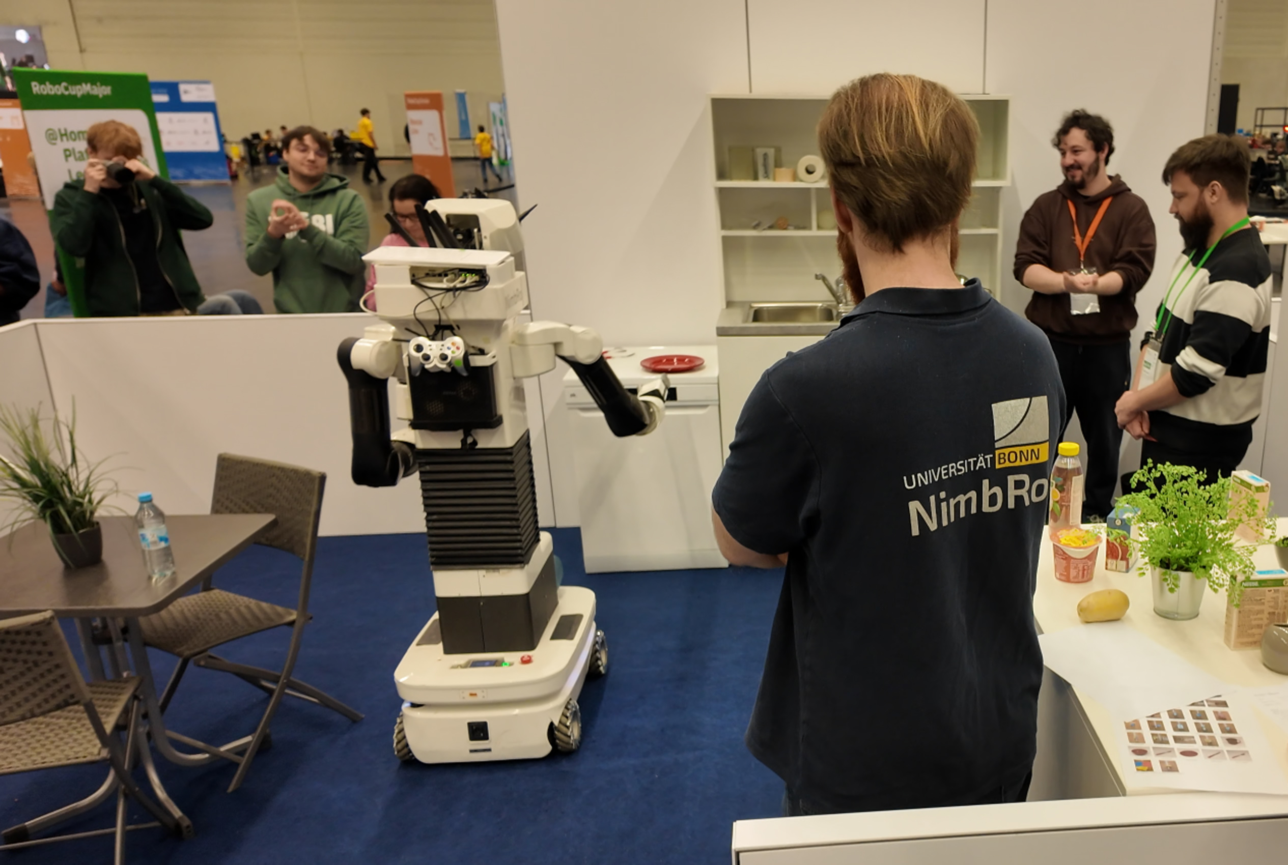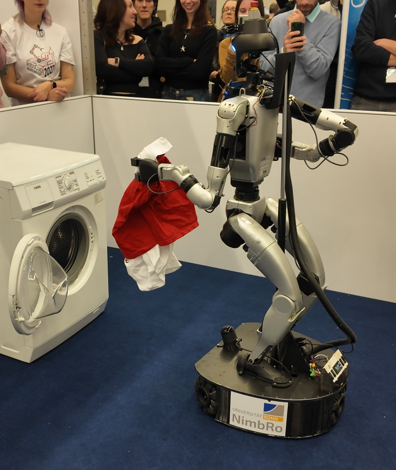 Our team NimbRo@Home won the RoboCup@Home Open Platform League (OPL) competitions of RoboCup 2024 in Eindhoven, NL. Our final score was 8,852 points. Runner-up was Tidyboy (Korea, 7,495 points), followed by SocRob@Home (Portugal, 6,901 points). [Press release]