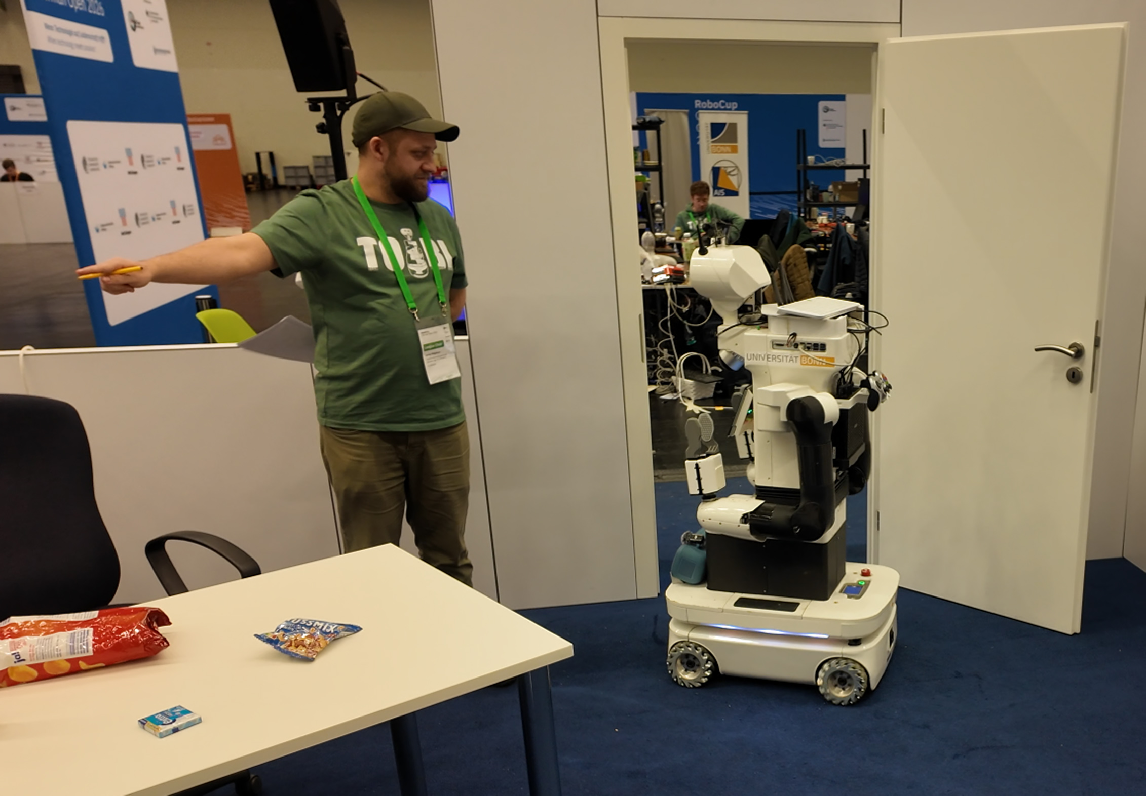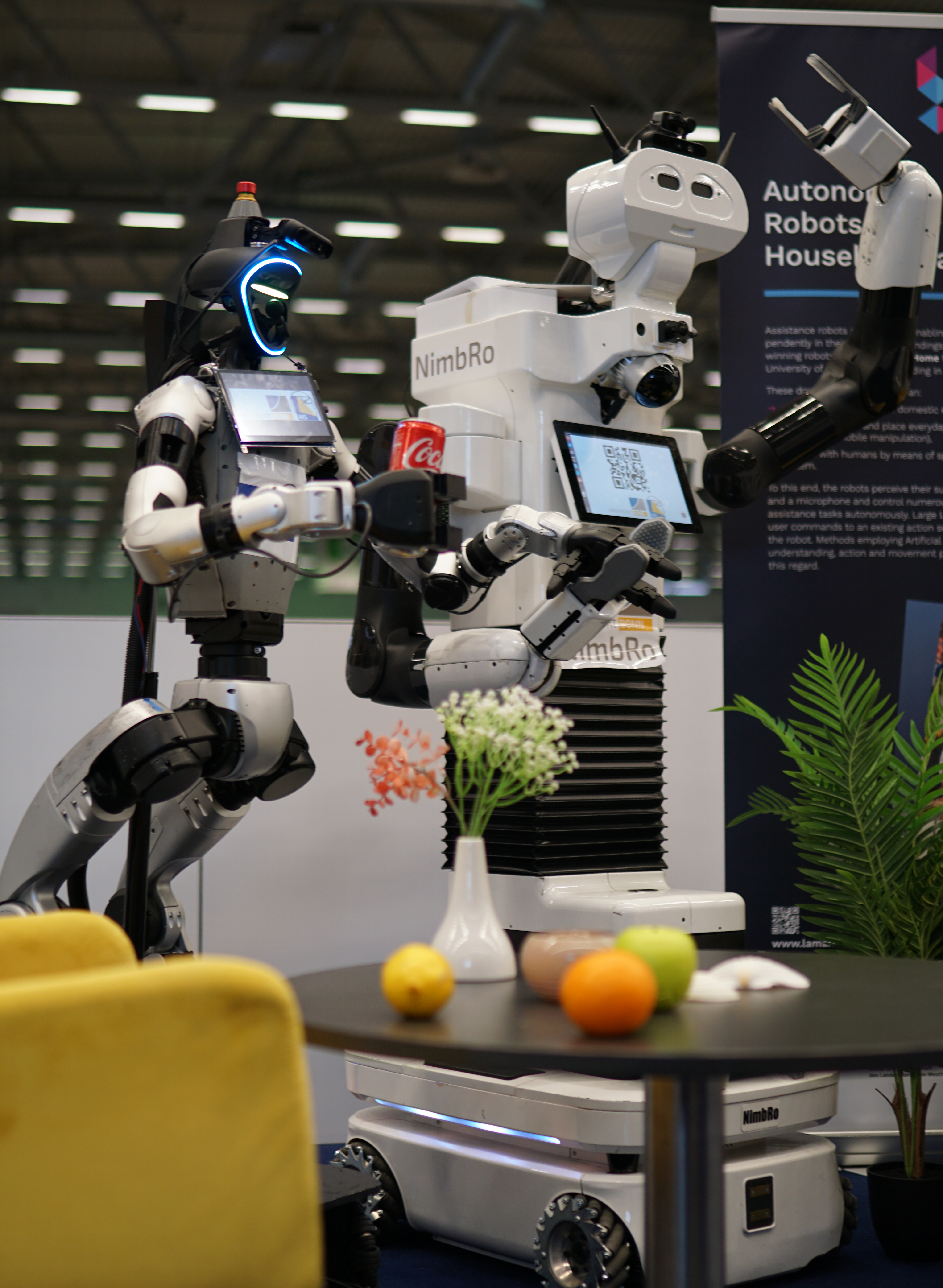 Robotinho gave a home tour to a guest while Dynamaid delivered a
